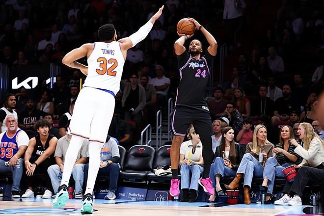- 2025年11月18日 热火7人上双复仇尼克斯 韦尔16+14&关键大帽 唐斯连失绝平球