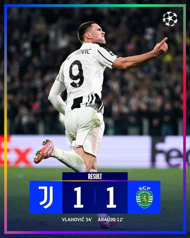 - 2025年11月05日 四轮不胜!尤文1-1葡体4轮欧冠3平1负 弗拉霍维奇破门图拉姆助攻