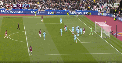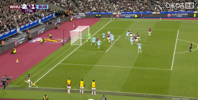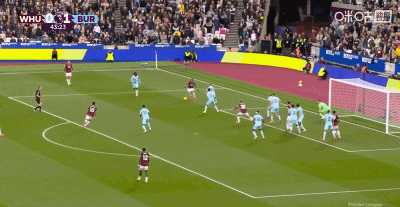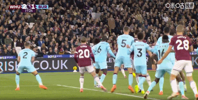 第77分钟,绍切克后点门柱位置撞射破门,西汉姆联2-1反超伯恩利