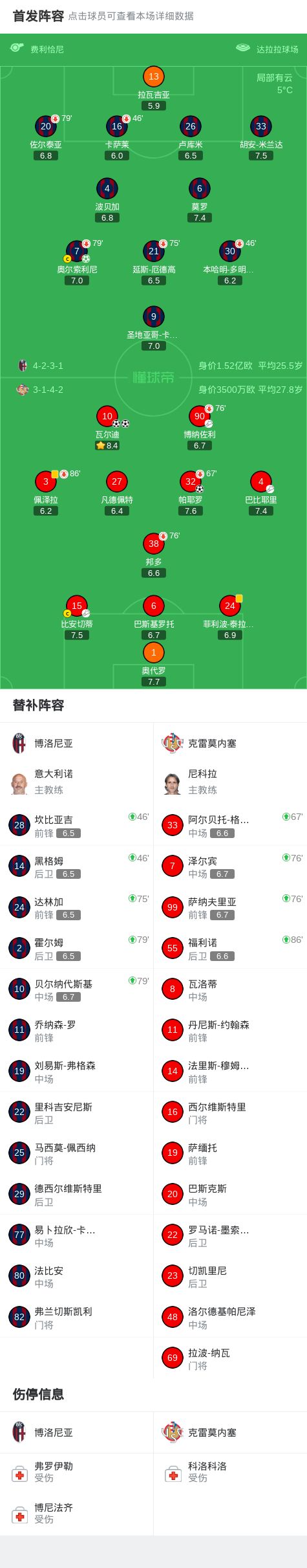 - 2025年12月02日 意甲-瓦尔迪梅开二度 克雷莫内塞客场3-1博洛尼亚