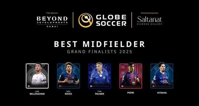 北京时间12月18日,环球足球奖公布了2025年最佳中场奖的最终五人候选名单,其中贝林厄姆、若昂-内维斯、帕尔默、佩德里、维蒂尼亚在列。