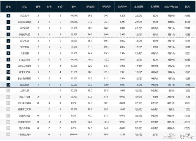 CBA积分榜